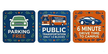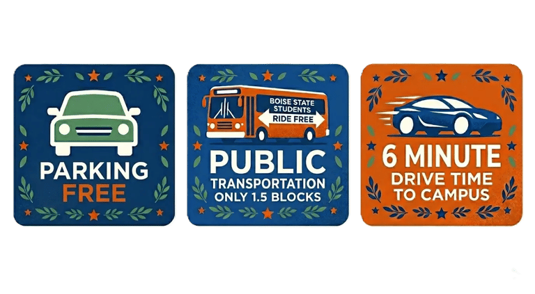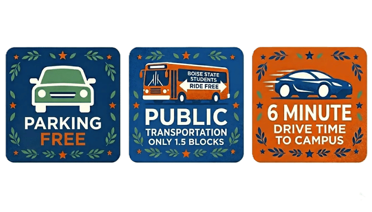 Close to public transportation- (1.5 blocks) BSU students ride for free
