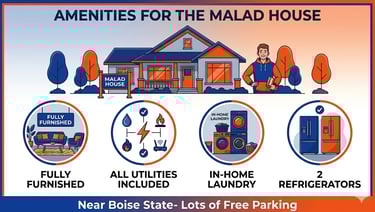 Near Boise State: Only 6 minutes by car or 8 minute bike ride